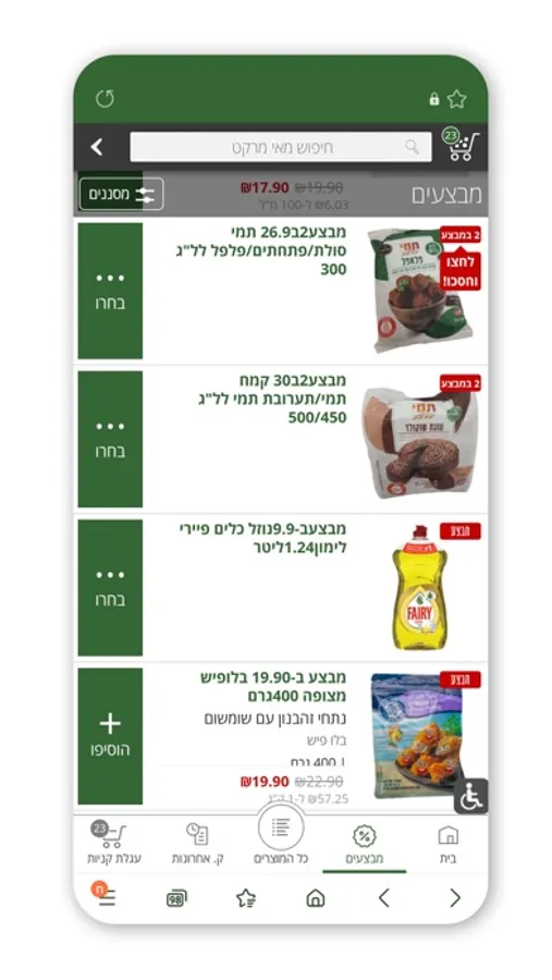 באפליקציית מאי מרקט תוכלו לחפש בנוחות ולמצוא בקלות את מגוון מוצרי האיכות הטריים , המוכרים והאהובים עליכם .