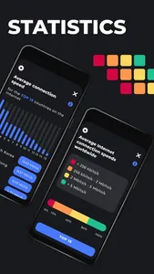 In this network analysis app, you can test your mobile and Wi-Fi speeds and save network passwords. Includes speed measurements, Wi-Fi password management, and global speed statistics.