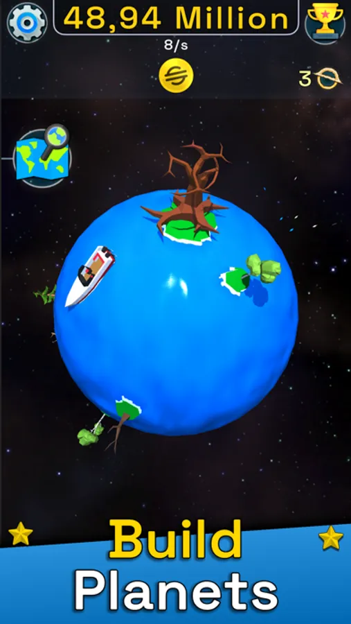 By simply tapping on the planet, you'll collect valuable coins and, bit by bit, increase the attraction to exciting objects flying around in space. If you're really clever, you'll use multiple fingers to collect coins even more effectively, to get the resources you need to build the planet as quickly as possible. However, Planet Evolution: Idle Clicker is not limited to just tapping, but also offers many exciting upgrades, special boosters and a unique prestige system to speed up your progress immeasurably and help you explore all areas of the universe.