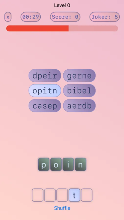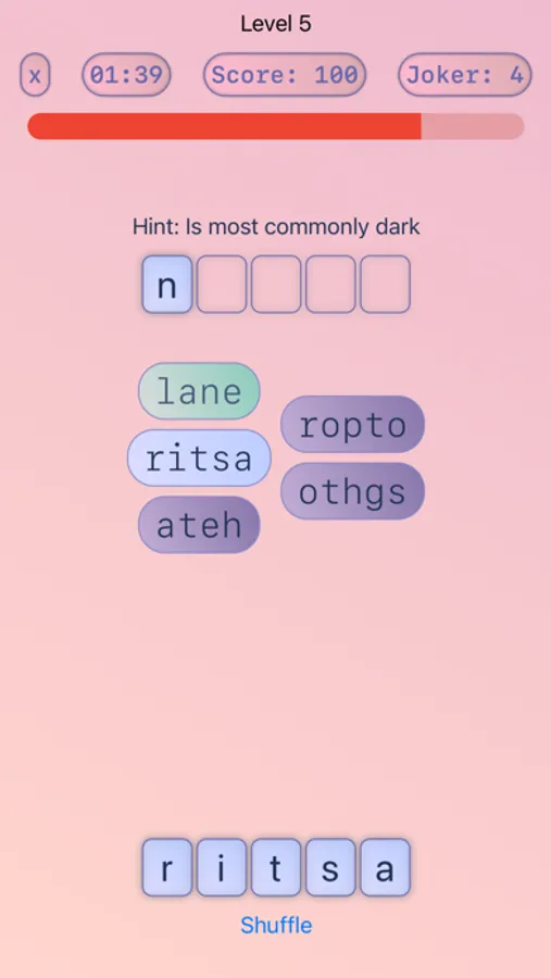 In the endless mode you get a new anagram for each anagram you solve. The faster you are, the longer you can make it. However the difficulty increases after solving a lot of anagrams. When the time runs out, the level ends.