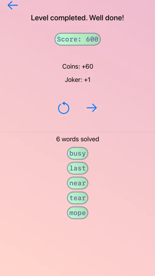 After all words are solved, one final word is formed by one letter of each solved word. Solve this anagram to complete the level.