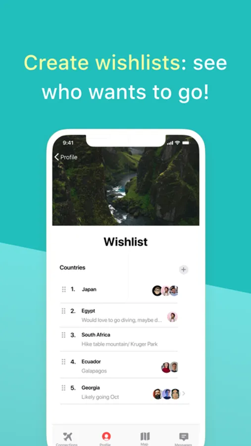 Create travel wishlists for places you want to visit, see when friends want to go to the same places