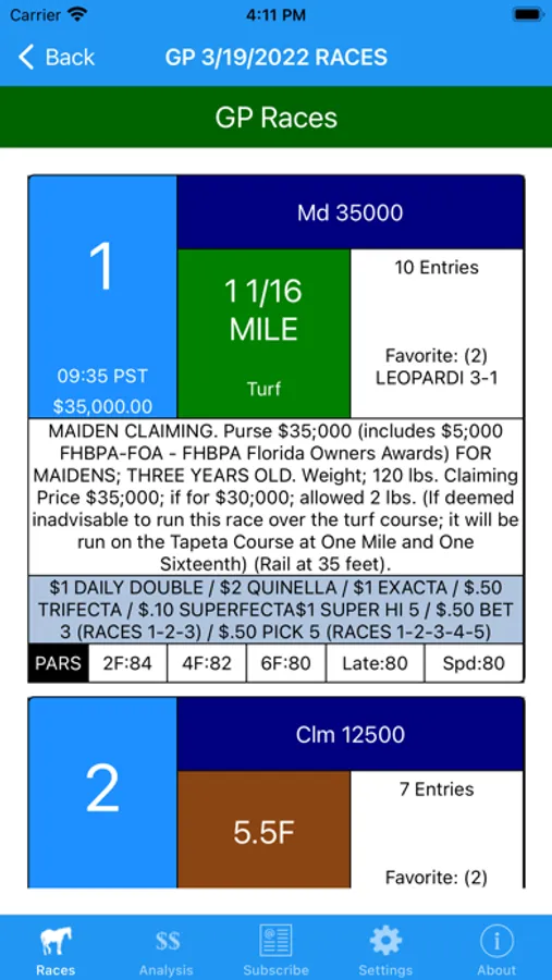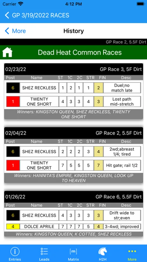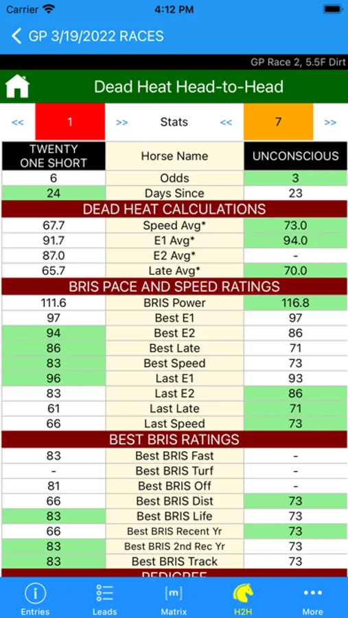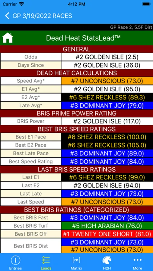 Dead Heat provides you with a different way to handicap the horse races using Brisnet data files (single or multi-file) or TrackMaster XML data files that you've already purchased and downloaded from their websites. Once you've imported the file into Dead Heat, you can view the PP Data in an enhanced manner, all on your mobile. No more being tied to your laptop or computer ... horses racing handicapping on the go.