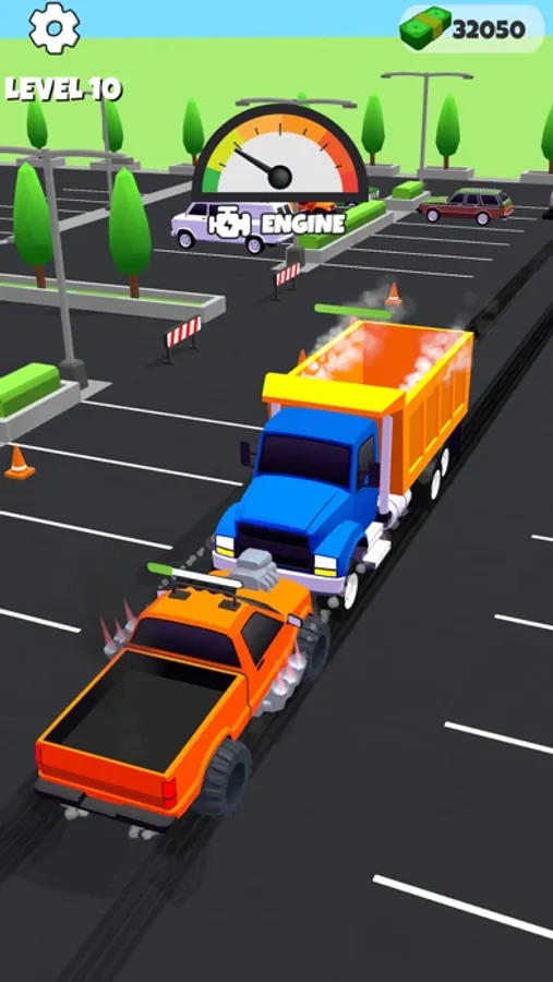 Start the game with your vehicle and smash the rival vehicles with gears by pushing them one by one! Earn rewards for each successful push and boost your vehicle to destroy challenging vehicles!