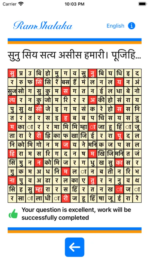 This App is an attempt to recreate RamShalaka in an App. This App replicates the same chart and methodology as the original RamShalaka devised by Goswami Tulsidas.