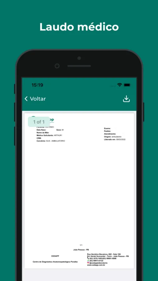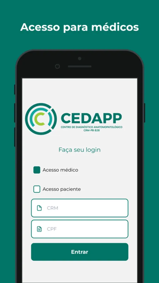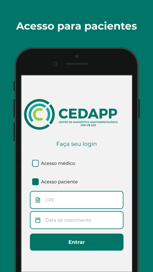 O aplicativo CEDAPP possibilita aos pacientes e médicos, vinculados ao laboratório, consultar laudos e resultados de exames.