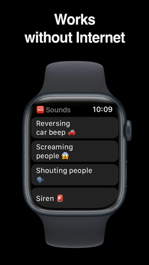 SpeakLiz Watch uses Artificial Intelligence in real-time to listen to your surroundings and notify you about +300 different types of sounds, especially those related to emergencies. It's optimized for working in 35 languages.