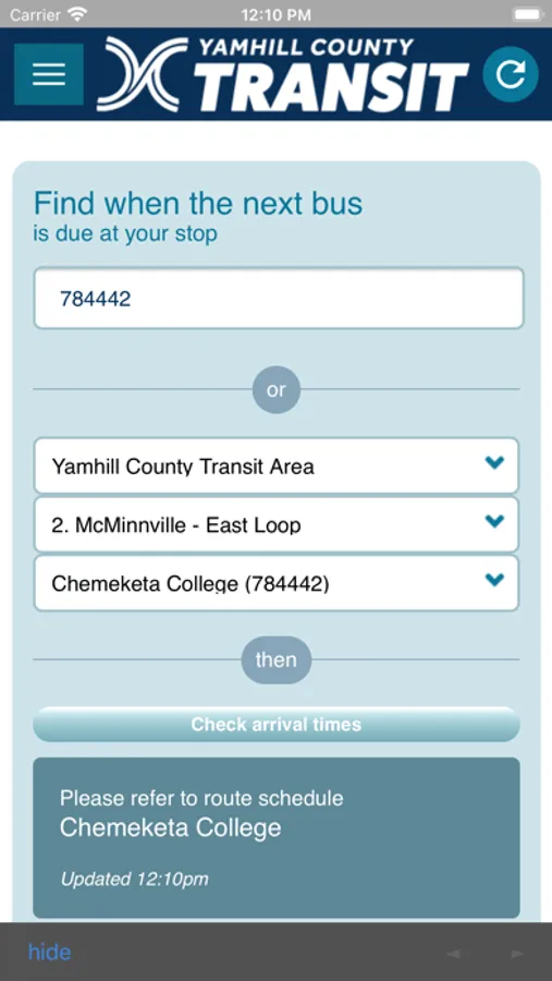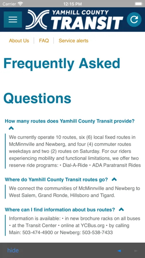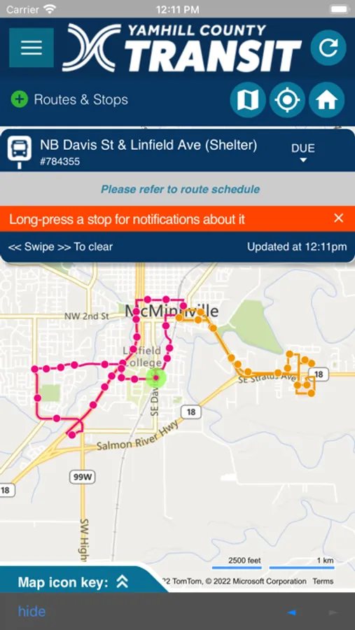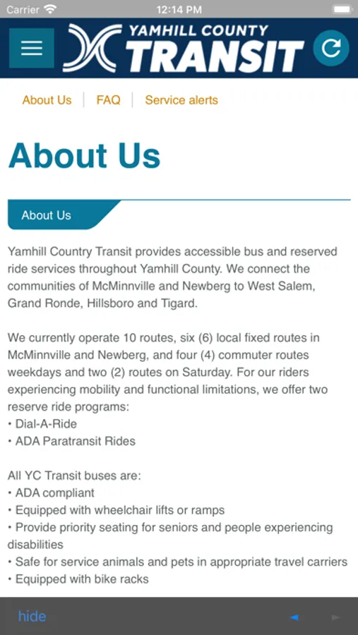 Find the nearest bus stop to your current location (requires GPS/ location services to be enabled on your device), view an ETA for your bus and view its current position. Save your favourite stops and routes, and access bus schedules. Yamhill County Transit bus service.