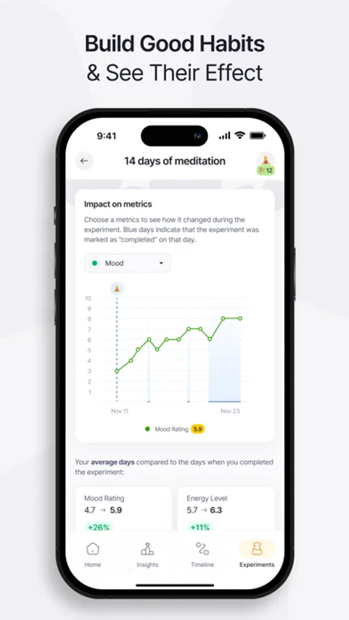 Effecto is a health tracking app that reveals how your actions affect your health, mood, and symptoms. Then it shows you exactly how your actions correlate with each other and what impact they have over time. Do this for a few weeks, and you'll know exactly what to do and what to avoid to improve your physical and mental health – for good.