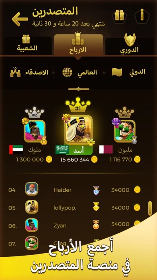 ٥. جداول الصدارة العالمية: اختبر مهاراتك مقابل لاعبين من جميع أنحاء العالم وتصعد إلى أعلى المراتب في جداول الصدارة العالمية. التنافس على أفضل المراكز واستعراض مهاراتك في لودو أمام العالم.
