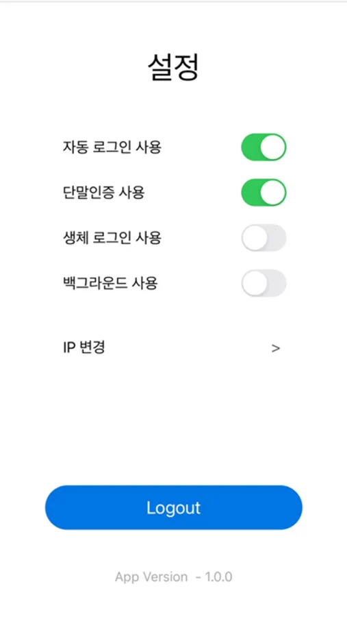 카드 사용을 위해서 Bluetooth 기능을 활성화해야 하며, 앱 내 단말장치 인증 ON 설정을 할 경우 화면의 스크린만을 ON 하여도 회사에서 제공하는 출입 리더기에 스마트폰을 접촉하여 리더 장치와 통신하여 출입 요청을 할 수 있습니다.