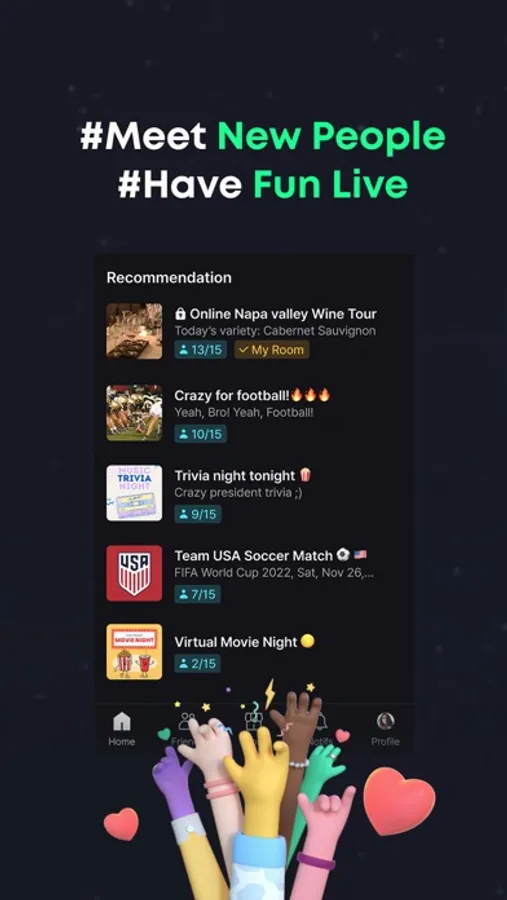 Join the fastest-growing global online community and chat about your passion! We have a variety of hangout for you to explore, from Kpop including BTS, TXT, Super Junior, to sports including NFL, NBA, and more. You can also create your own hangout and invite friends.