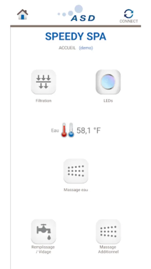 L'application "Speedy Spa" permet de piloter les fonctionnalités des différents coffrets de la gamme Speedy spa.