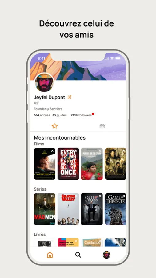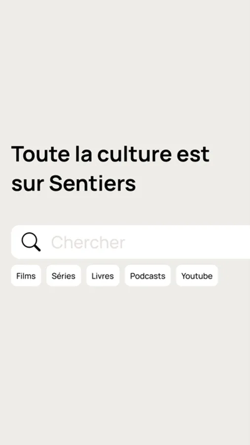 Sentiers est une plateforme sociale pour partager vos goûts culturels (cinéma, séries, littérature, podcasts et chaînes YouTube).