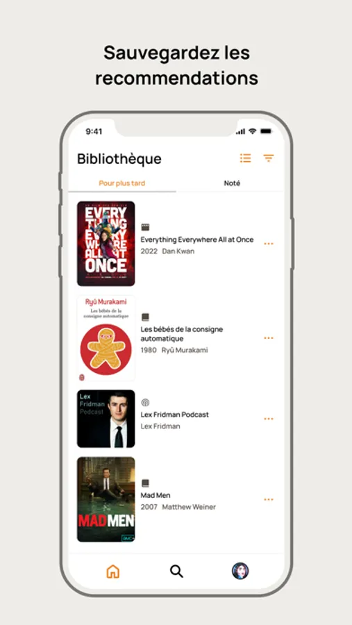 - Utilisez l’application comme un journal pour enregistrer votre opinion sur les contenus que vous consommez, ou simplement pour garder une trace des choses que vous avez regardé/écouté/lu par le passé.