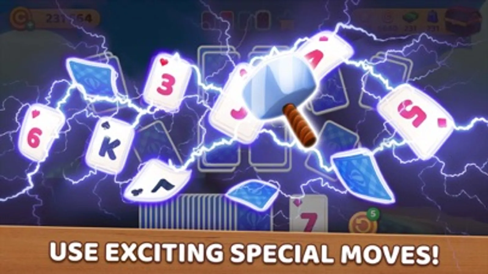 Play with big cards and indulge in striking graphics and soothing music. Discover a fresh angle on classic solitaire with exciting bonuses, events, and challenges. Watch stunning card animations as you progress and collect your well-deserved rewards. Best of all, the game is completely risk-free!