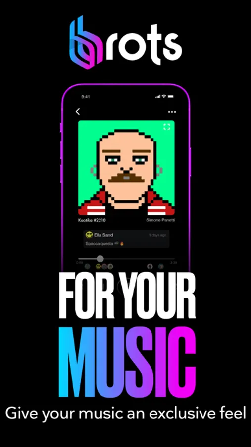 Brots is a mobile app that lets you discover and collect your favorite artists' new tracks. Enjoy exclusive content, support music, and immerse yourself in a new music experience.