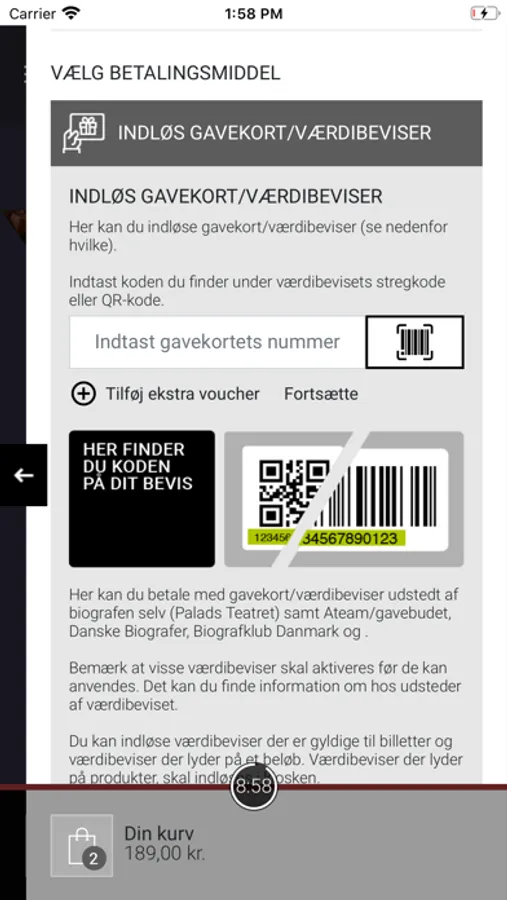 Du kan også købe varer i kiosken. Dit køb leveres som værdikuponer til din telefon – varerne får du udleveret ved at fremvise din telefon i vores ’fast lane’ der kun er for brugerne af vores app.