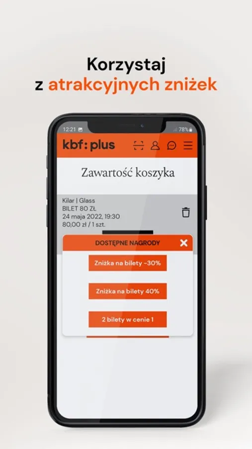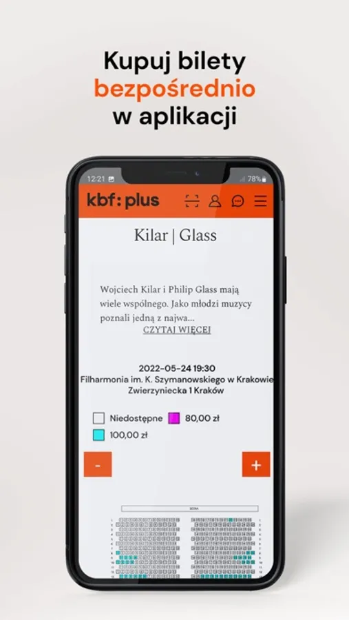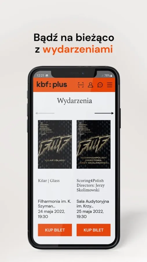 Aplikacja KBF: PLUS, pozwoli zaplanować Twój udział w życiu kulturalnym Krakowa. Program lojalnościowy nagradza za uczestnictwo w najpopularniejszych festiwalach i wydarzeniach kulturalnych w Krakowie. Wystarczy, że przed udziałem w naszych wydarzeniach kupisz bilet lub pobierzesz wejściówkę poprzez aplikację KBF: PLUS, a zostaną Ci przydzielone punkty, które zamienisz na zniżki na bilety lub inne nagrody.