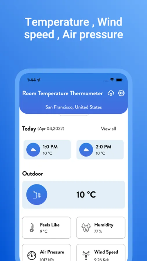 - Measure outdoor room temperature and indoor temperature and humidity based on your location.