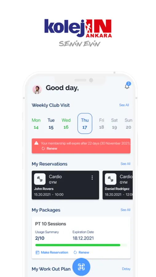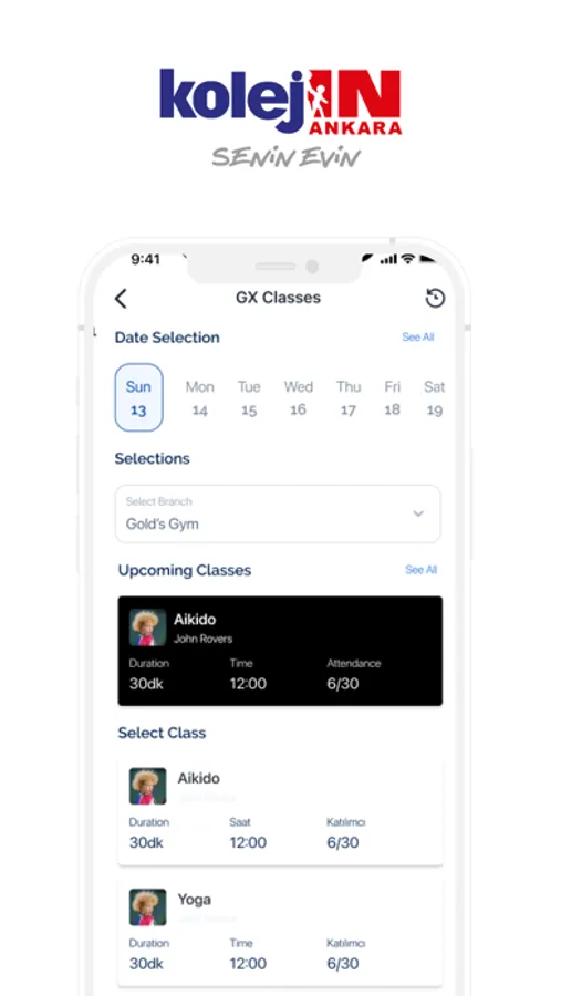 Kolej -IN GYM üyeliğinizi yönetmek için kullanılan bir IOS uygulamasıdır. Üyelik yönetimi, Stüdyo Ders İşlemlerini gerçekleştirebilen Senkron Yazılım tarafından üretilmiş bir IOS uygulamasıdır.