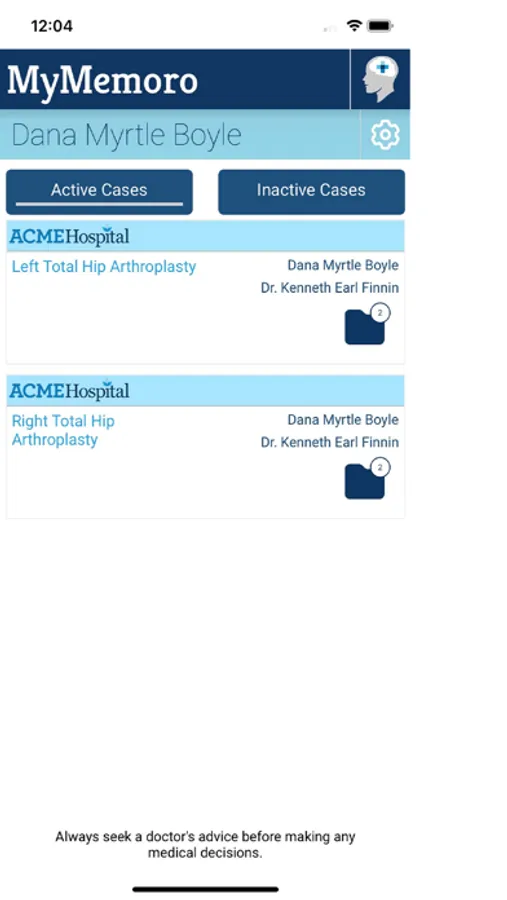 All information included in the MyMemoro application is provided by the patient's medical professional and/or their staff. Always seek a doctor’s advice before making any medical decisions.