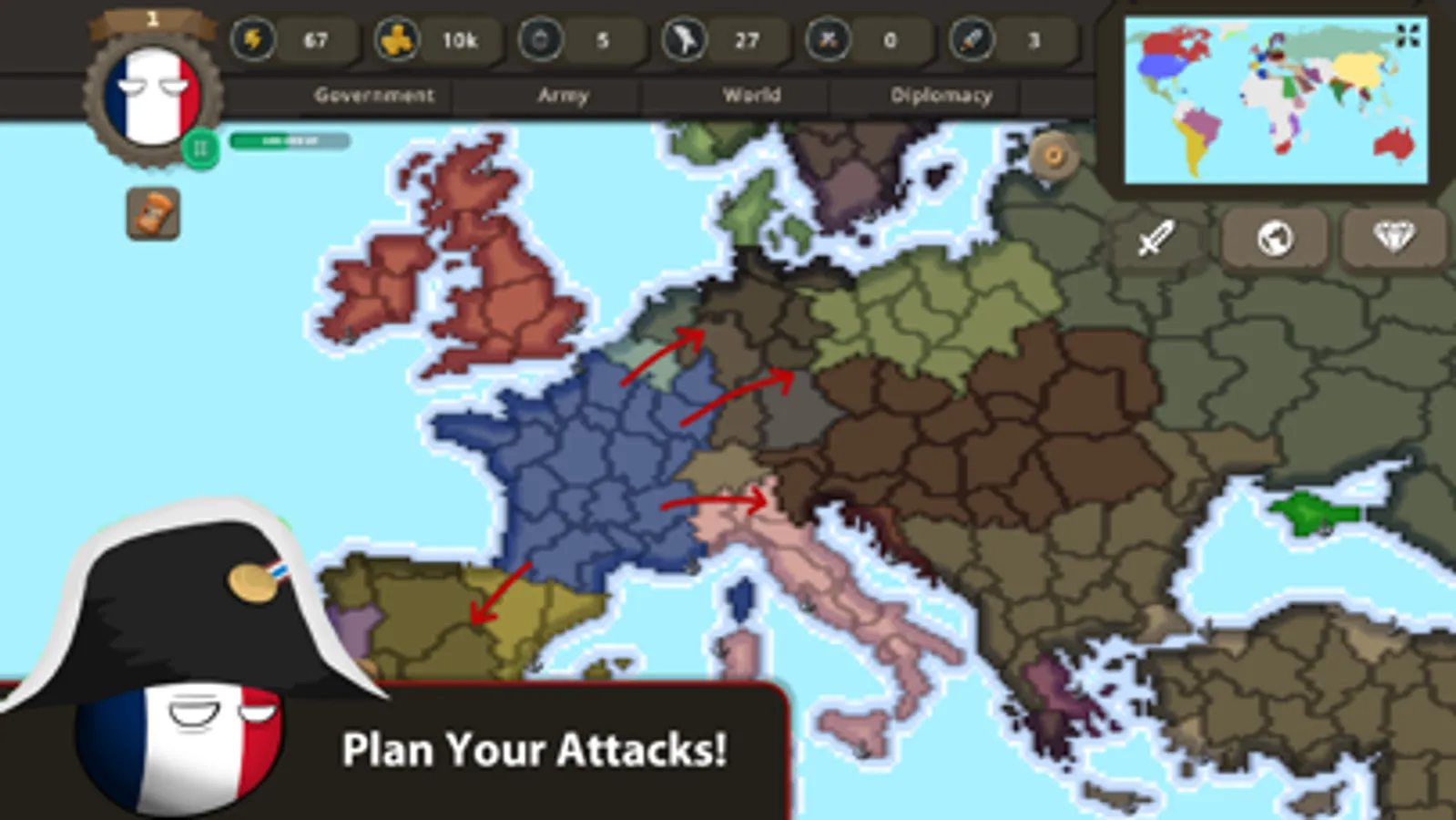 In combats, your aim is to cross your enemies' borders by sending your units to the battlefield. Enemies will not accept that to happen that easily. So, you should call your allies to battle and you should build strong armies!