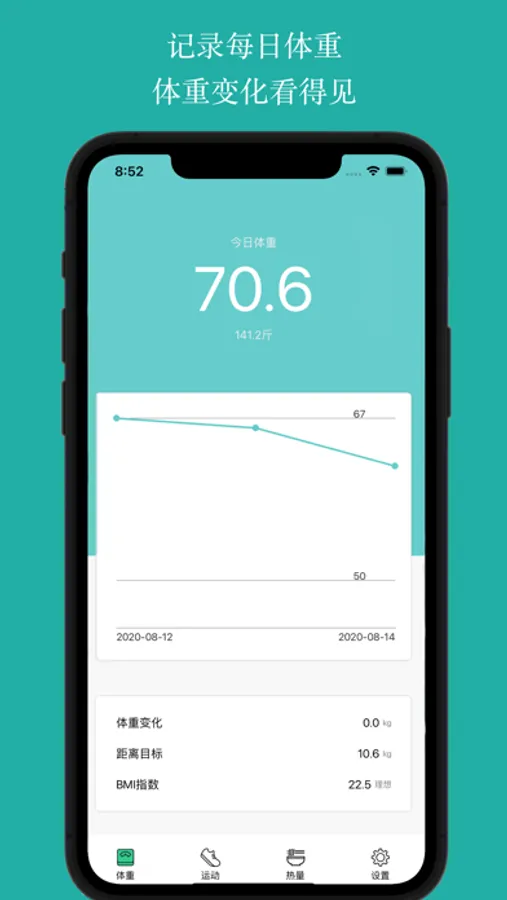 1.记录每日体重,并通过图表的方式显示,让人们能直观的了解体重变化。