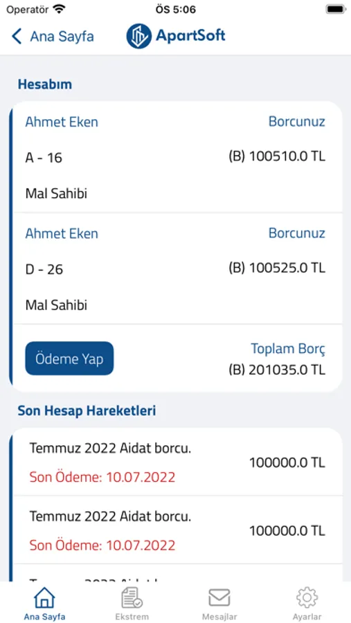 Bina veya sitenizin borç ve alacaklarını takip edebilirsiniz.