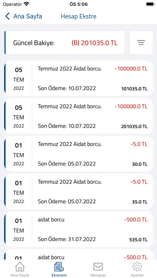 Dairelerin aidat borç güncel durumlarını takip edebilirsiniz. Toplu borçlandırma özelliği ile daireleri borçlandırabilirsiniz.
