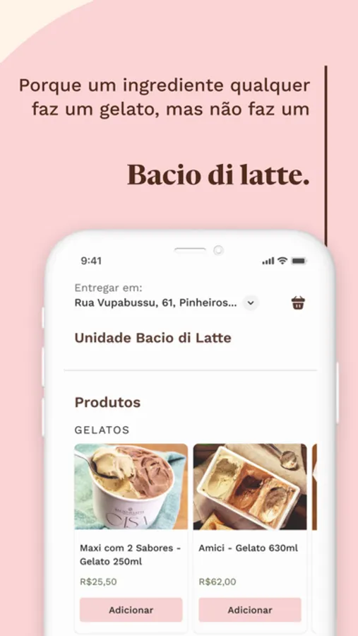 Tudo o que você mais ama da Bacio di Latte em um lugar só. Compre seu gelato com mais comodidade e ganhe ponto no fidelidade.