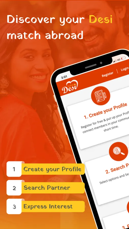 Find your Ideal Match on GoForDesi by following easy steps: