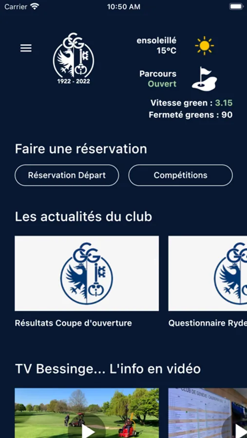 Découvrez l'application officielle du Golf Club de Genève. Présentation du Golf et les services associés pour les extérieurs et fonctionnalités spécifiques pour les Membres :