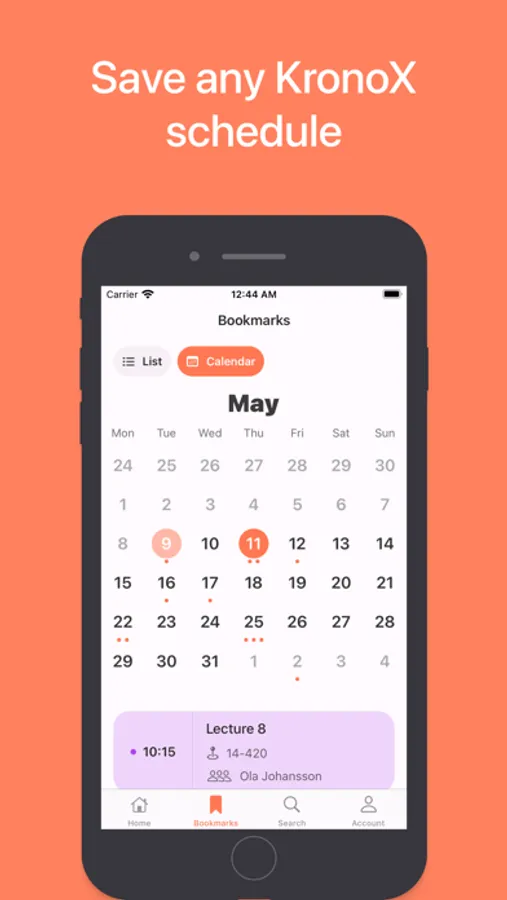 The app is an unofficial attempt to improve on the flaws of the official Kronox app, of which there are a lot.