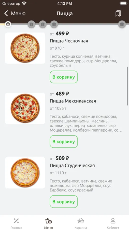 • пицца – «Чесночная», «Студенческая», «Эгоист»;