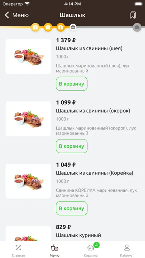 • гриль и мясные закуски – шашлык из окорока и корейки, крылышки;