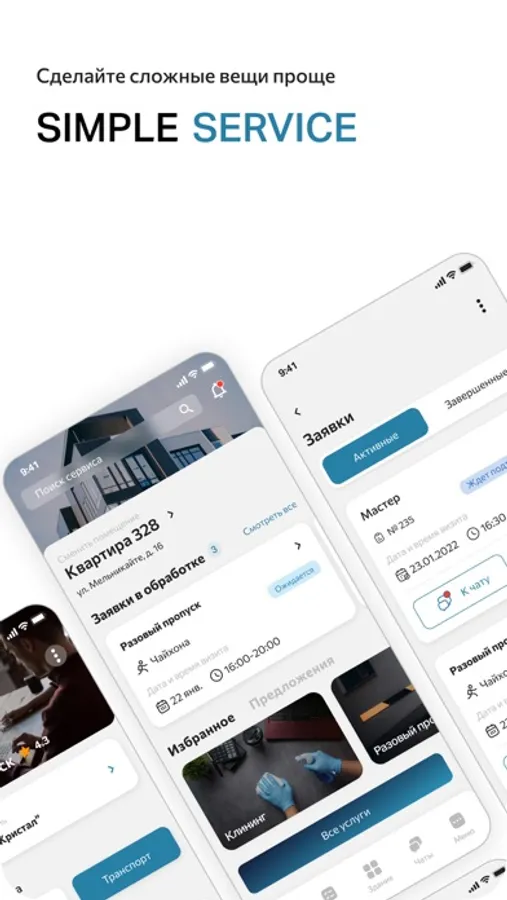 Все сервисы управляющей компании - у вас в кармане. Пользуйтесь услугами вашего жилого комплекса, офиса, бизнес-центра или любого другого объекта: оставляйте заявки, контролируйте выполнение и решайте все бытовые вопросы быстро и удобно с Simple Service.