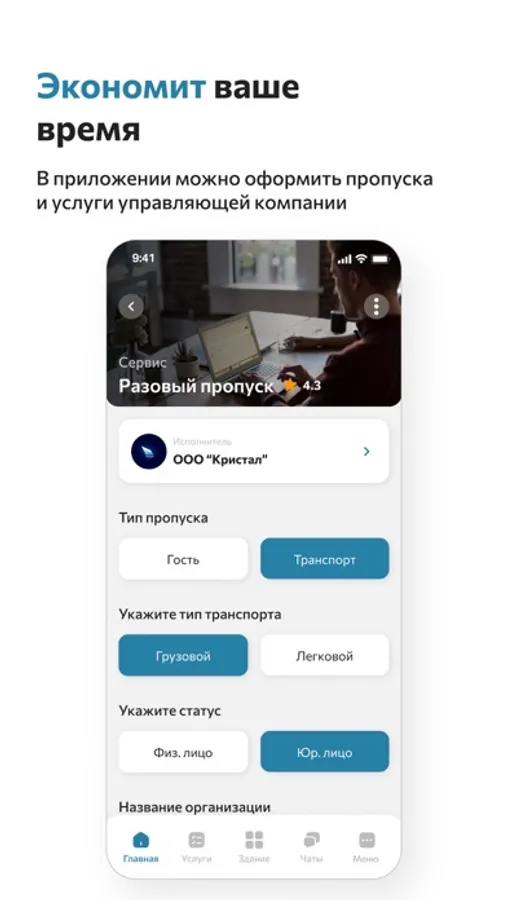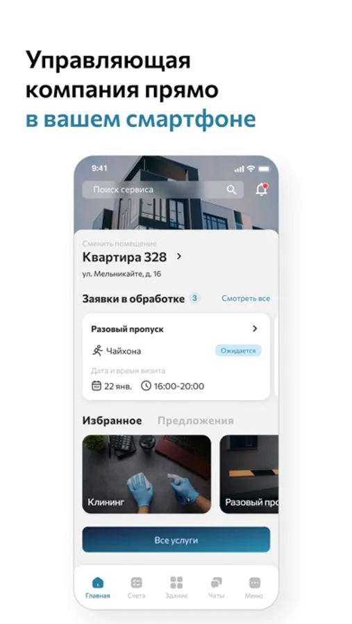 • оставляйте заявки на ремонт техники, вызывайте мастера домой для починки крана, заказывайте пропуски для гостей или уборку рабочего места;
