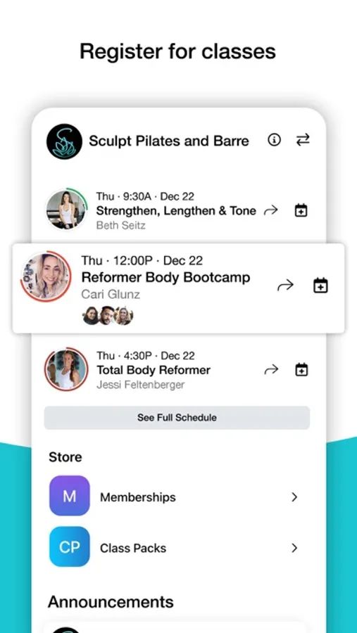 From the moment you step through the door to our welcoming studio, you will know Sculpt isn’t just any Pilates studio. You’ll experience our one-of-a-kind handcrafted workouts and meet members of the Sculpt family who encourage, support and motivate one another to achieve optimal wellness. Sculpt offers group classes, private and semi-private duet sessions, each led by highly trained professionals who will guide you in safety using pristine, state-of-the art exercise equipment. Clients of all fitness levels are welcome. Sculpt offers a uniquely welcoming, calming and intimate setting where you can develop personal connections with instructors and other studio members while achieving optimal health of body and mind.