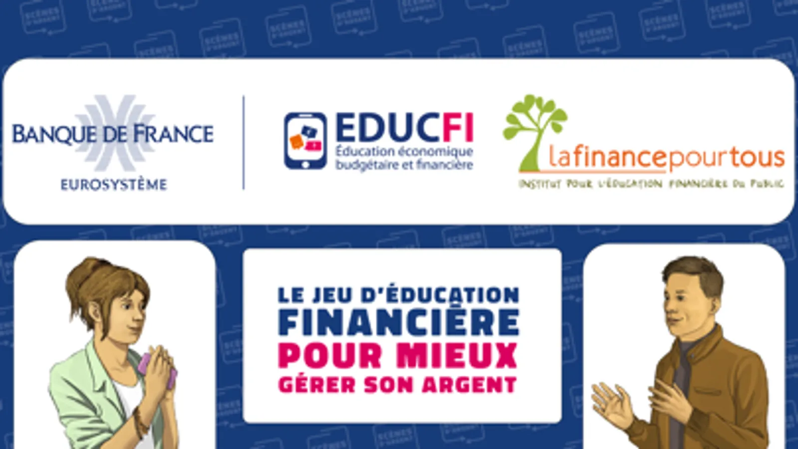 Avec le jeu Scènes d'argent, tu vas apprendre à bien gérer ton budget, ainsi qu'à maitriser tes finances (comptes en banque, moyens de paiement, crédit, épargne, assurance...) tout en t'initiant aux bonnes pratiques dans ces domaines. Tu vas apprendre à te poser les bonnes questions et à avoir les bons réflexes quand il s’agit de gérer ton argent et de construire tes projets. En toute sécurité car il s’agit d’un jeu non commercial créé par la Banque de France et l’association La finance pour tous dans le cadre de l’action publique EDUCFI.