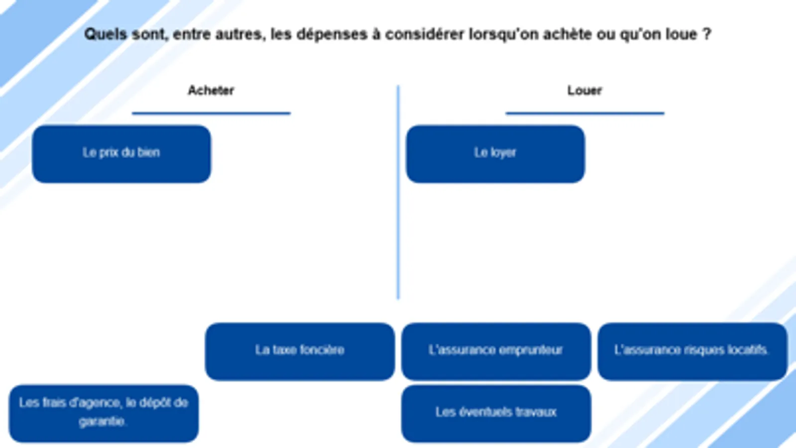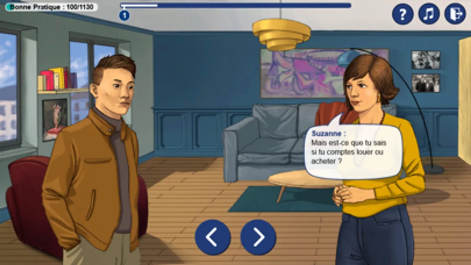 Le jeu comprend sept séquences : je suis étudiant, j'entre dans le monde du travail, j'achète ou je loue un bien immobilier, je m'installe en couple, un enfant arrive, j'ai perdu mon emploi... À toi de choisir la ou les séquence(s) qui t’intéresse le plus