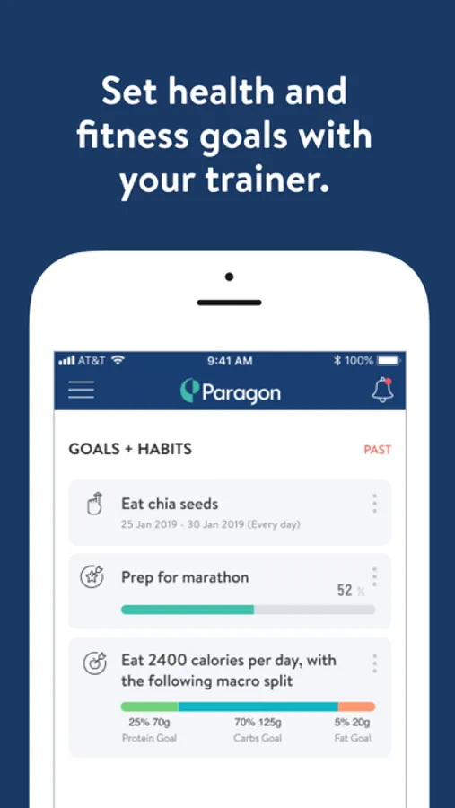 With the ParagonWell App, you can start tracking your workouts and meals, measuring results, and achieving your health and fitness goals, all with the help of your personal coach.