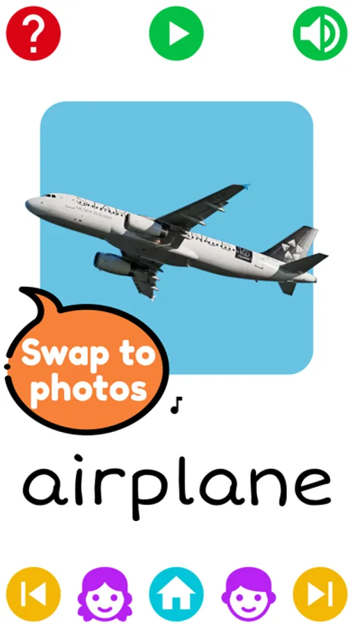 First Words Baby & Toddler will help your baby or toddler learn new words in English using interactive flashcards with a bold and simple art style, fun sounds, clear speech and large text.