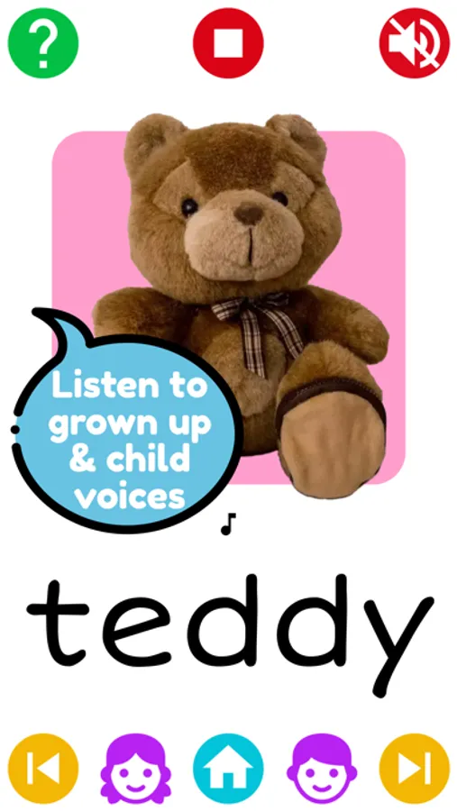 Designed by a UK Primary School Teacher for babies and toddlers between 12 months and 3 years old. This app will teach your children more than 500 first words in English with 3 different voices (adult, boy, girl).