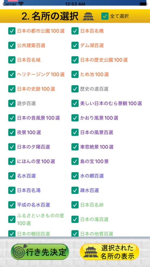 ※以下の名所百選・百景に関して、アプリ内から詳細情報を閲覧することができます。