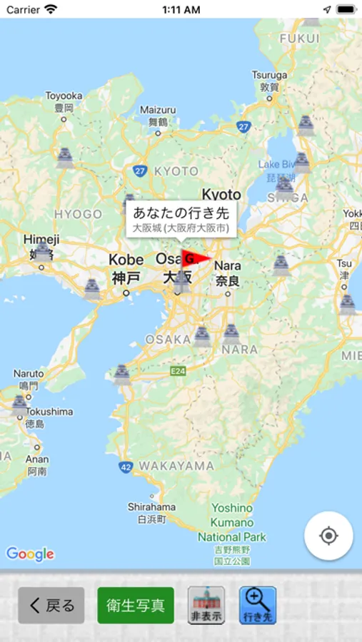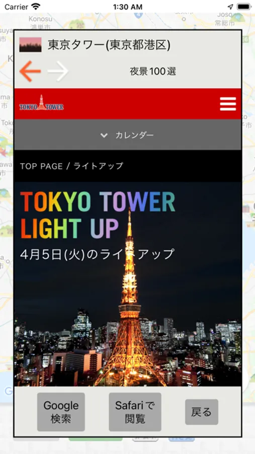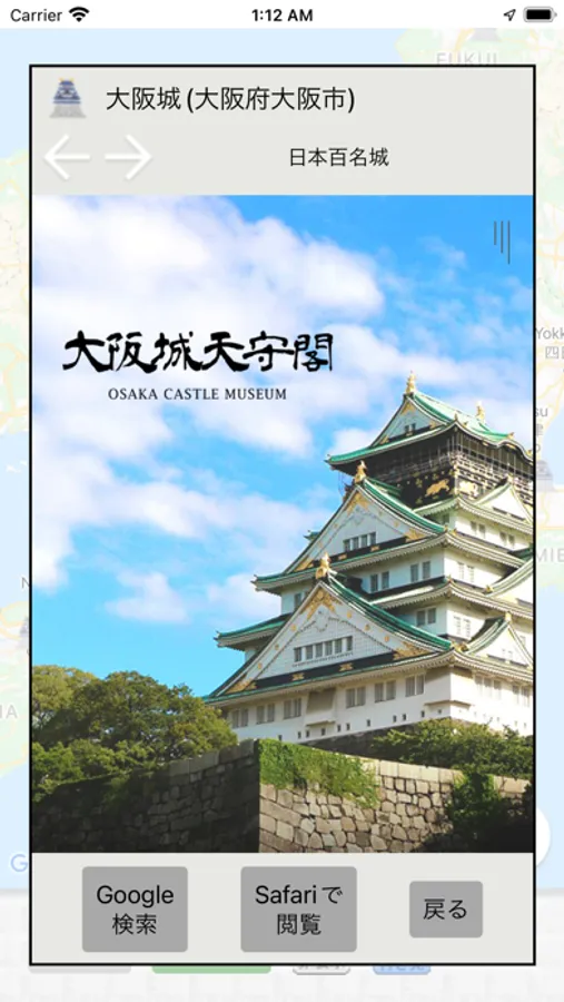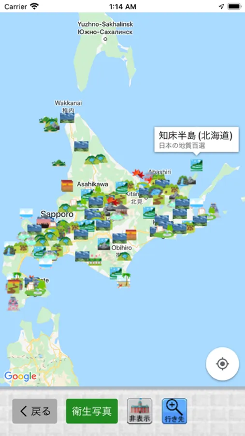 観光名所(日本100選)の一覧をマップ上で一目で確認することもできます。