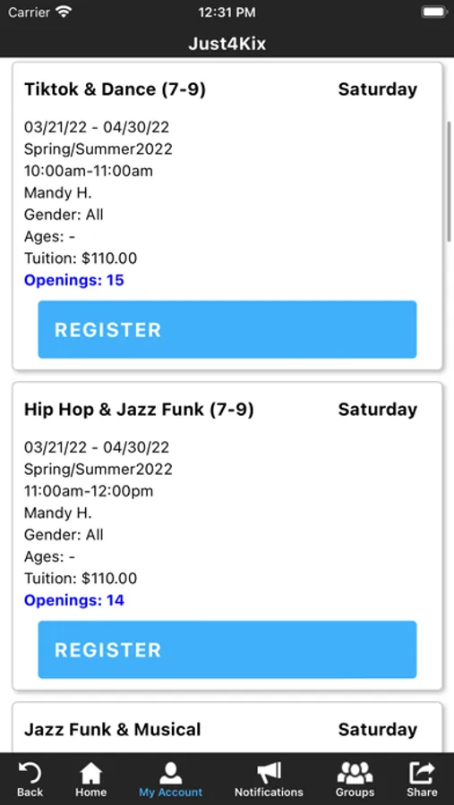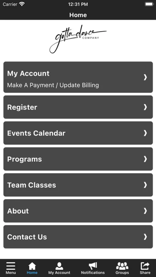 The Gotta Dance Company app allows you to manage your account with ease, register for classes, parties, and special events. You'll also receive important notifications about class changes, closings, registration openings, special announcements, and upcoming events.