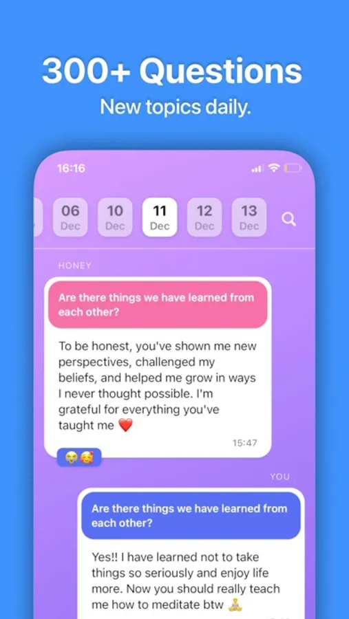 But: Your partner is only able to see what you have written once they answered too on the same day - so you better not miss it!