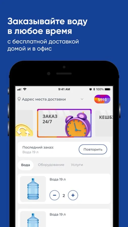 Скачайте приложение АБЗЕЛИЛОВСКАЯ ВОДА на свой смартфон и делайте заказ воды 24/7. Вы сможете повторять заказ нажатием одной кнопки, видеть всю историю покупок и быть в курсе всех акций компании.