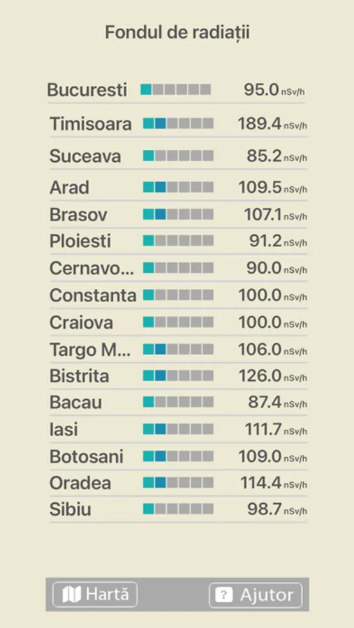 Aplicația colectează date despre radiații de la senzorii oficiali aflați pe teritoriul țării, actualizându-le la fiecare 4 minute.